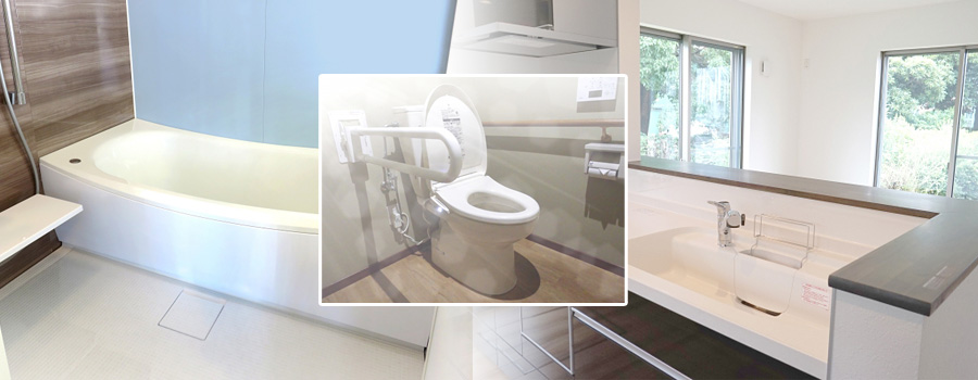 家族が笑顔になるお母さんの手料理をより良くするのは、使いやすさと清潔に満ちたキッチン。トイレやお風呂は、清潔で快適な空間にリフォーム。節水型の汚れが付きにくいエコな最新型便座もご提案しています。